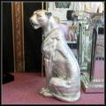 シルバーのワイルドなレオパードの置物。吠えた表情とリアルな身体感が立派なお品です。大きさがございますので、存在感がございます。 目にはスワロフスキー、首には2列のラインストーンネックレスをセットしたスペシャルバージョンです。 サイズ 約 W50cm D35cm H79cm です。重さは約5kg前後になります。 樹脂製です。製品の性質上色ムラ・成型ムラ等ございます。1点限りのお品です。 こちらの商品は送料無料です。