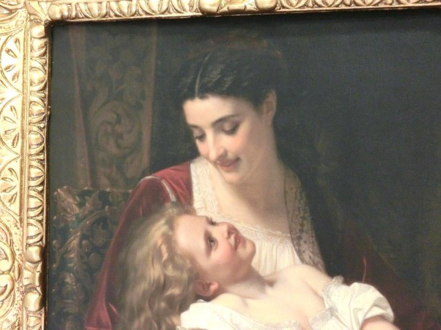 ヨーロッパ名画 貴婦人と子供を描いた素敵な作品です。 キャンバス印刷の複製画。