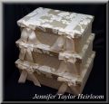 ジェニファーテイラー ヘアルーム ボックス3点セット やや光沢のあるリーフ柄のファブリックにアイボリーのリボンが素敵なお品です。 サイズ 約 L*W41cm D28cm H14cm M*W38cm D25cm H13cm S*W35cm D22cm H12cm になります。 こちらの商品は送料無料です。