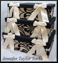 ジェニファーテイラー ヨーク ボックス3点セット シルク調のファブリックとブラックの模様、リボンが素敵なお品です。 サイズ 約 L*W41cm D28cm H14cm M*W38cm D25cm H13cm S*W35cm D22cm H12cm になります。 こちらの商品は送料無料です。