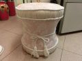 ジェニファーテイラー ヘアルームピンク ラウンド型スツール 大人気のファブリックに新たにラウンドスツールが仲間入り。座面下とベース部をシルクタッチの上品なベージュで切り替えした とても素敵なお品です。胴体のリボンタッセルもアクセント。 サイズ 約 W42cm D42cm H45cm になります。 こちらの商品は送料無料です。