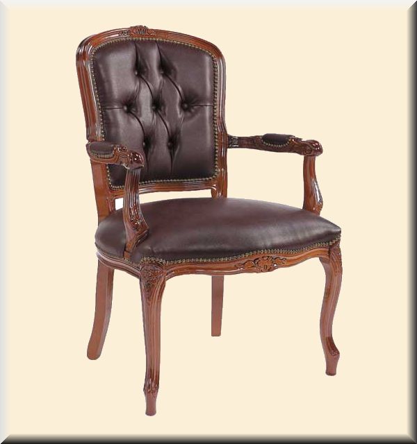イタリア製 サロンアームチェア クラッシック ブラウン合皮 艶やかなフレームにダークなブラウン、高級感がございます。ゆったりとした空間を演出できます。 サイズ W61cm D60cm H88cm SH45cmになります。 こちらの商品は送料無料です。直送となりますので、代引きはご利用いただけません。