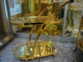 流れるようなフォルムの美しいワゴンです。 フレームもしっかりとしており、ゴールドと相成り立派なお品です。下段がミラーですので、演出効果がございます。組み立て式ですが、組み立てての発送となります。僅かなスレ等はご容赦下さい。 サイズ 約W69cm D57cm H82cm です。 こちらの商品は送料無料です。