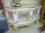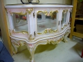 ロココ調のサイドボードです。 全体的に曲面仕上げで、細部にわたり重厚な造りになっております。内部背面はミラーバック仕様ですので、飾りものがはえわたります。 サイズ 約W122cm D49.5cm H81cm 天板ガラスはサービス品として付きますので、僅かなキズ、チップはご了承下さい。 こちらの商品は直送になりますので、代引き不可となります。 発送は安心のらくらく家財宅急便 送料無料です。