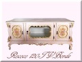 ロココ調テレビボード120です。 彫刻や色使いがまるで洋菓子のようなお品です。お部屋に単体であっても華やぐことでしょう。センター部分にはコード穴がございます。 サイズ 約W120cm D43cm H60cm になります。 天板ガラスはサービス品として付きますので、僅かなキズ、チップはご了承下さい。 こちらの商品は送料無料です。直送になりますので、代引き不可となります。 発送は安心のらくらく家財宅急便を利用いたします。
