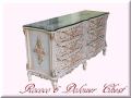 ロココ調ワイドチェスト6段 とても立派な商品です。ミラーを合わせてドレッサーがわりにもお使いいただけます。 天板が広く、ディスプレイも楽しくなります。 天板ガラスはサービス品として付きますので、僅かな小キズ等はご了承下さいませ。 サイズ W156cm D49cm H79cm になります。 こちらの商品は直送となりますので、代引きはご利用いただけません。 配送は安心のらくらく家財宅急便 送料無料です。