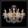 8本のスパイラルアームとロングチェーンが素敵なシャンデリア。高級クリスタルを使用しておりますので、綺麗な輝きを放ちます。クリアとゴールドの豪華なお品です。