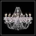 15本のスパイラルアームとロングチェーンが素敵なシャンデリア。高級クリスタルを使用しておりますので、綺麗な輝きを放ちます。クリアとシルバーの豪華なお品です。支柱デザインはコラム・ボール・コラムの組み合わせです。
