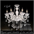 オフホワイトとクリアクリスタルのパーツが素敵なシャンデリア。高級クリスタルを使用しておりますので、綺麗な輝きを放ちます。ディッシュやコラムのデザインが上品なシャンデリアです。