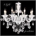ホワイトとクリアクリスタルのパーツが素敵なシャンデリア。高級クリスタルを使用しておりますので、綺麗な輝きを放ちます。コラムのデザインが美しい品です。