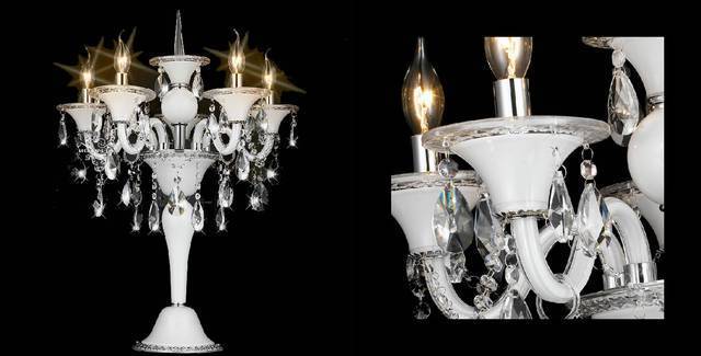 ホワイトベースにクリアクリスタルの素敵なランプです。 高さがありお部屋での存在感がございます。 サイズ 約W54cm H70cm LED4W5個付属。 組み立て式。アームの配線が必要です。 受注生産商品ですので、お届けには3~4週間ほどお待ちいただきます。 こちらの商品は送料無料です。