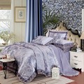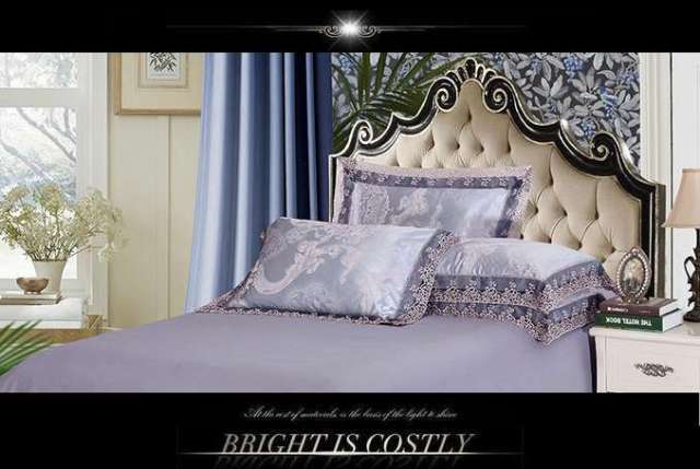 光沢のある綺麗なカラー。ダマスク模様の素敵なジャガード織りです。カバーのエッジにレースをあしらった美しい仕上がりのセットです。