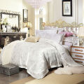 清楚なホワイト系の素敵なファブリック。カバー足元の両サイドとピロケースの一方に刺繍をあしらい、エレガントな仕上がり。