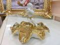 イタリア サバディン社 セラミック エンジェル ゴールドシェルトレー スワロフスキー付 スワロフスキーに座った可愛らしい天使。たて笛を吹き、イタリアメイドならではの表情。シェルのデザインが素敵なお品です。 サイズ 約W20cm D17cm H15cm になります。 こちらの商品は送料無料です。
