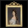 トップにモチーフの付いたアンティーク仕上げゴールドフレームエリザベートの額絵。 ポリエステルキャンバスに印刷され紙質とは異なる仕上がりです。 表面にはアクリルがセットされます。 サイズ 約W37cm D2.6cm H55cm 背面にはヒモを利用して掛ける金具2か所付。 ミラーフレームを利用しております。背面縁にはタッカーを外す際にできます小キズ・欠け、背板にもタッカーの痕はご了承下さいませ。 受注生産のため2週間ほどお待ちいただきます。