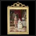 トップにモチーフの付いたアンティーク仕上げゴールドフレーム貴族の額絵です。