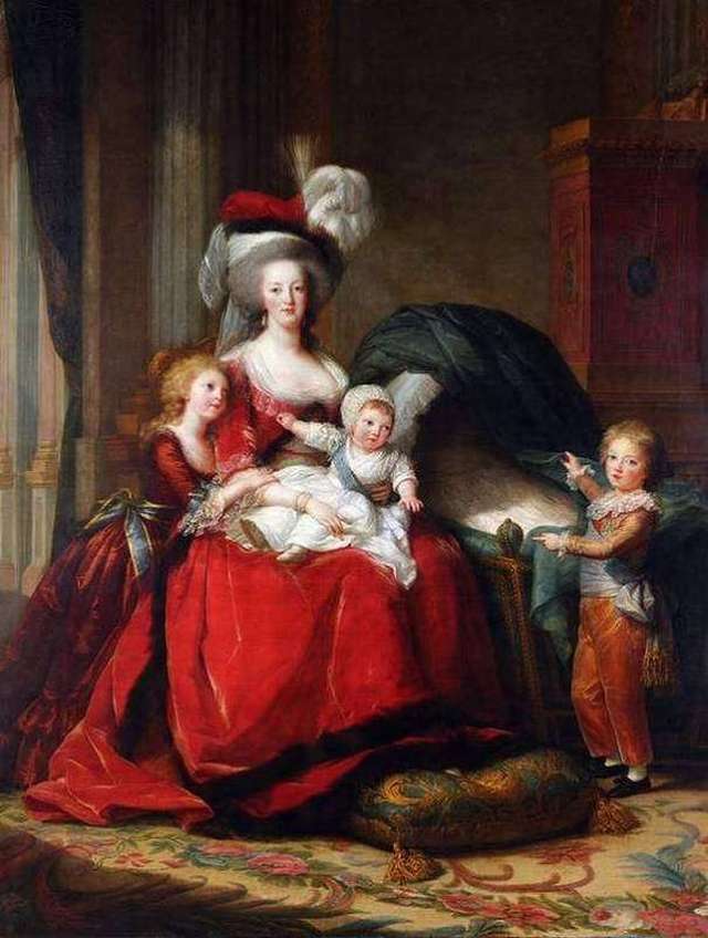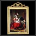トップにモチーフの付いたアンティーク仕上げゴールドフレームマリーアントワネットファミリーの額絵。