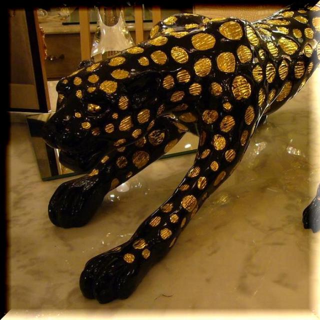 アニマルオブジェ ブラックレオパード ヒョウの置物 Lサイズ L107cm 送料無料