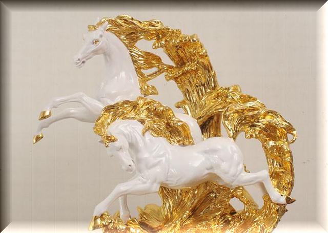 アニマルオブジェ ホワイトホース ゴールド 2頭 送料無料