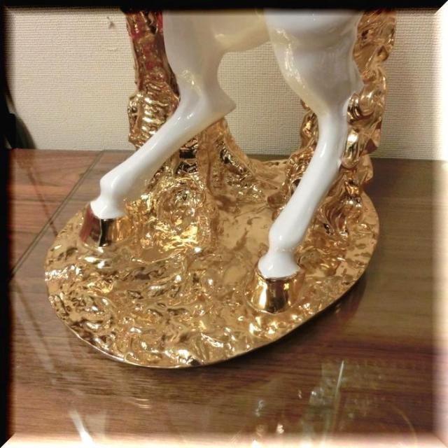 アニマルオブジェ ホワイトホース Mサイズ 跳ね馬 ホワイトゴールド 置物 送料無料