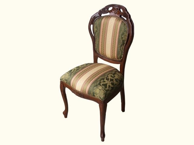 イタリア製 クラッシック ダイニングチェアー グリーン系ジャガード 送料無料