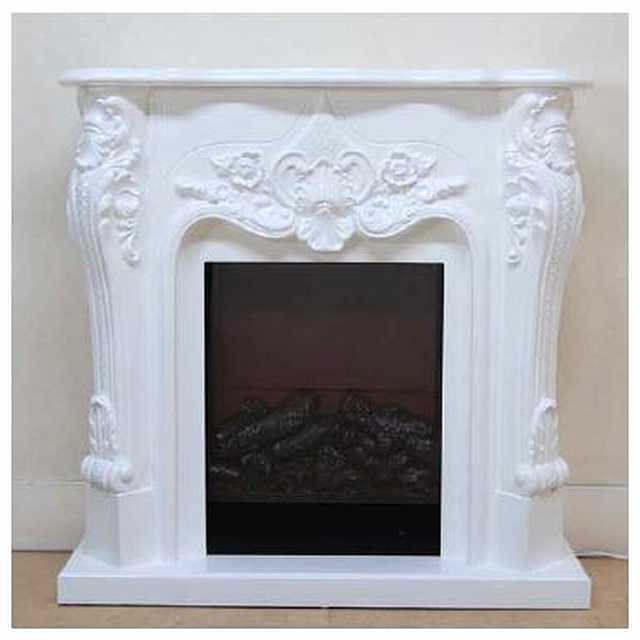 マントルピース フェイクファイヤー付 ホワイト・ブラウン 暖炉 ロココ NR 送料無料