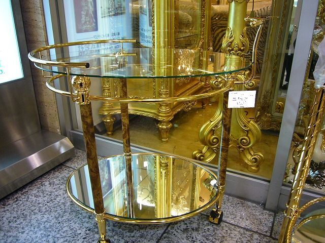 インテリアワゴン ゴールド・ウォールナット ミラー付 送料無料