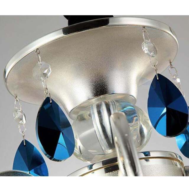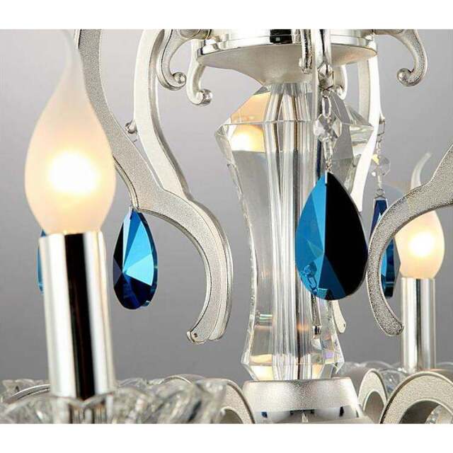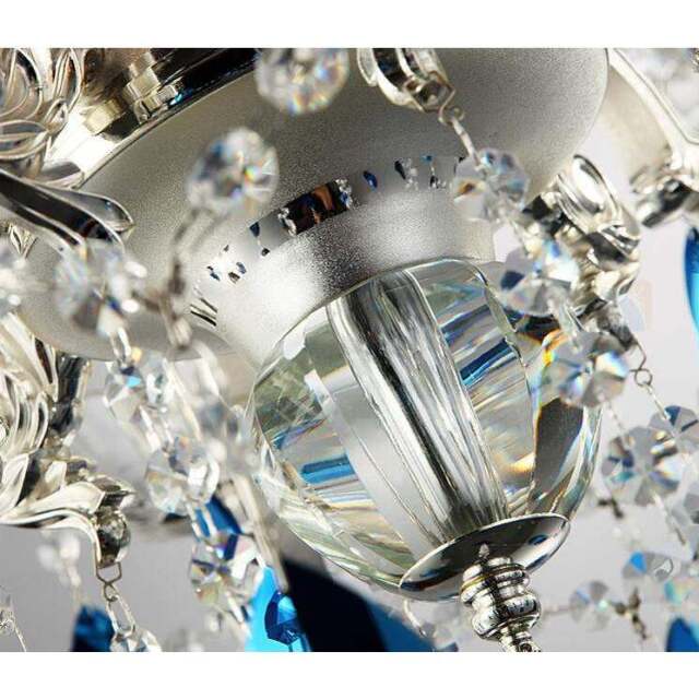 メタルシルバーフレームにブルーコーティングのクリスタルパーツをセットした素敵なシャンデリア。本体コラムもクリスタルを使用した高級仕様です。
