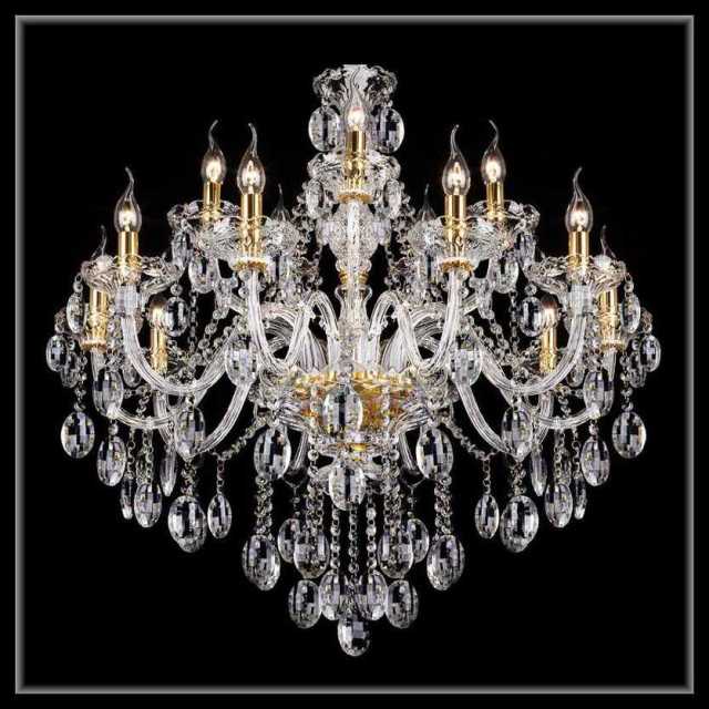 10本プラス5本のストレートアームとオーバルクリスタルが素敵なシャンデリア。高級クリスタルを使用しておりますので、綺麗な輝きを放ちます。クリアとゴールドの豪華なお品です。