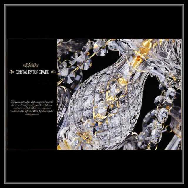 12本プラス6本のストレートアームとオーバルクリスタルが素敵なシャンデリア。高級クリスタルを使用しておりますので、綺麗な輝きを放ちます。クリアとゴールドの豪華なお品です。
