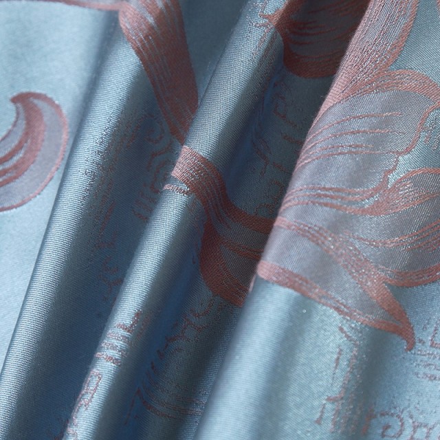 光沢のある綺麗なカラー。ブルー系ダマスク模様の素敵なジャガード織りです。カバーのエッジにレースをあしらった美しい仕上がりのセットです。