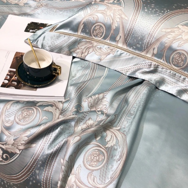 高級サテンに上品なカラーの織柄。エレガントな雰囲気を演出します。しなやかなドープ感にエジプト綿の優しい肌触りをお楽しみいただけます。カバー表面はサテン生地。カバー裏面とシーツにエジプト綿を使用しております。色合いがなんとも美しいカバーリングセットです。